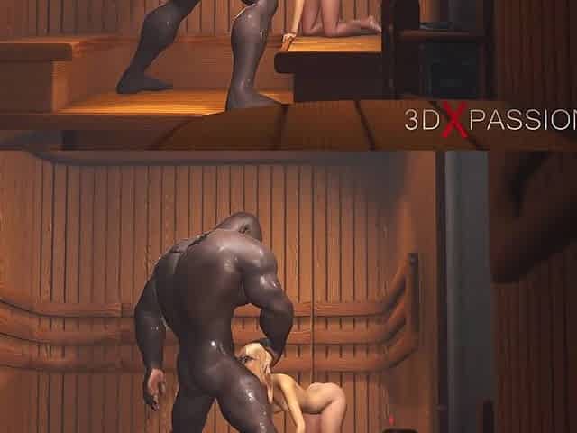 Virgin nerdy girl in glasses gets fucked by a black big cock in sauna
