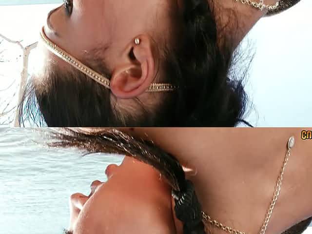Sweet brunette girl Julia de Lucia banged in 3some under the sun