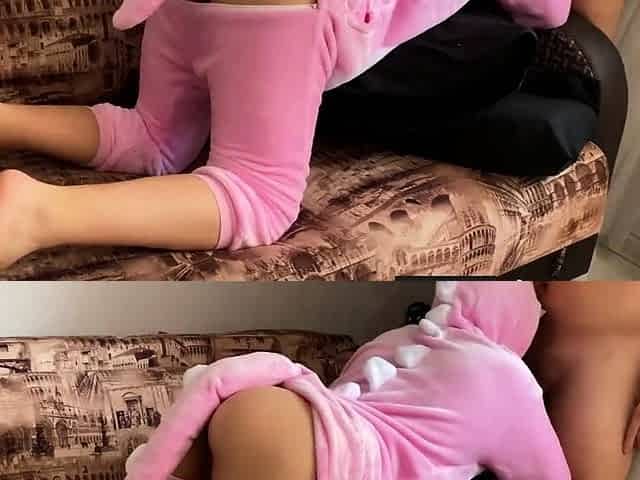 Sassy doll masturbating on the sofa!
