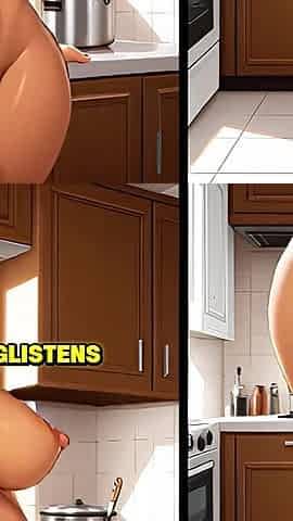 Fat dominican girl cooking pork chops and stripping