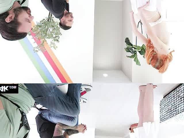 Slutty redhead chick Gracey Snow rammed by two big dicks