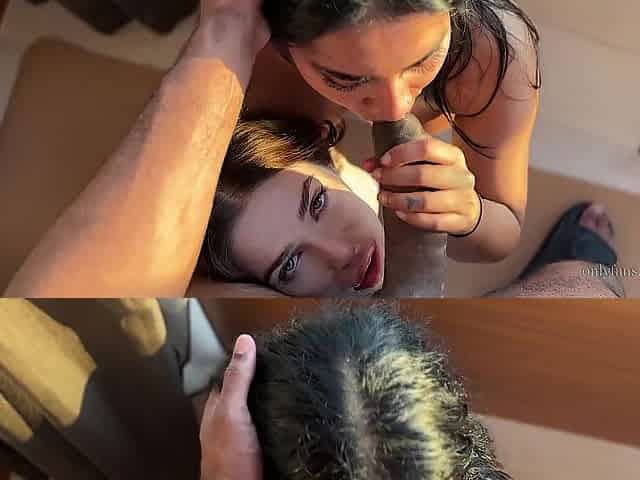 Beautiful double blowjob and hot sex with a slutty brunette Hloe