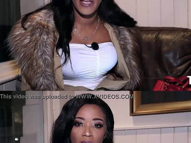 Huge tit and medium tit black lesbians lick and fuck with a double dong on camera