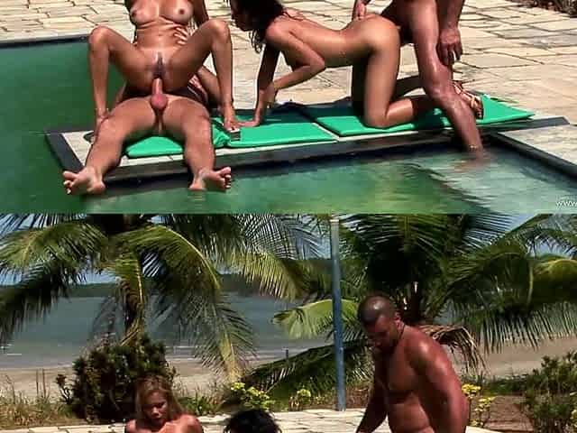 Alina and Druuna Diva enjoy foursome banging on the poolside