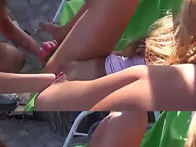 3 Guys Let A Girl In A Circle On A Public Beach. Double Vaginal And Bukkake