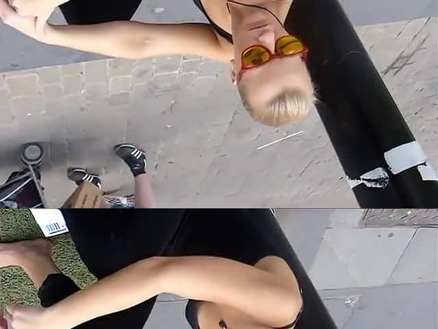 Down blouse and upskirt video of gorgeous blonde girl