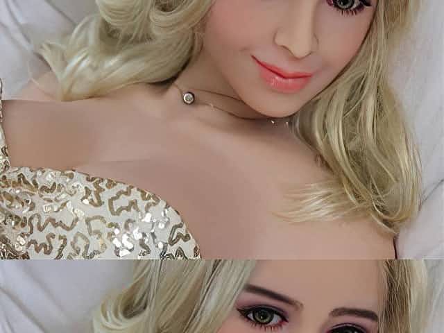 Sexy blonde cougar sex doll in pantyhose short dress