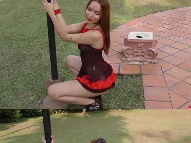 Sexy girl in balck dress srtipshow and dancing