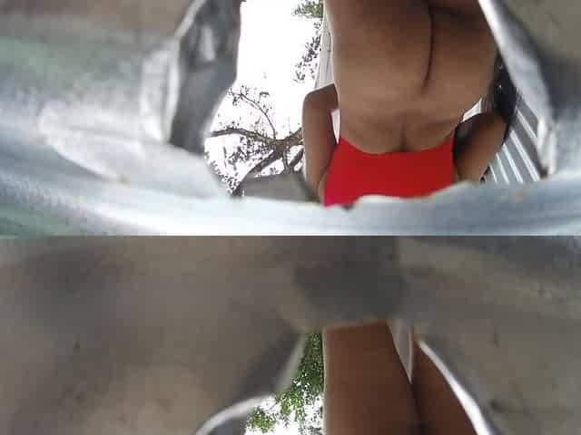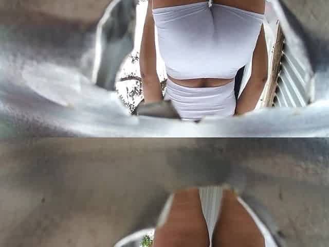 Voyeur dressing room on the beach recording throughout the dressing room gap outdoors