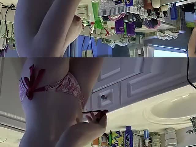 Girl is dressing on in the bathroom on spy cam video