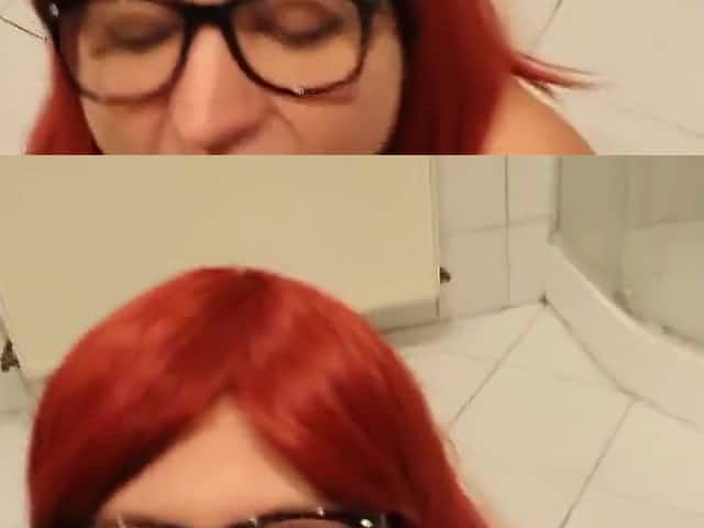 Cute redhead drinks piss and gives amazing head in the shower.