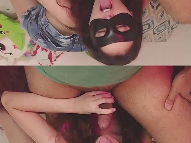 Masked chick is eagerly sucking her lover's schlong, as unfathomable as that babe can drink it