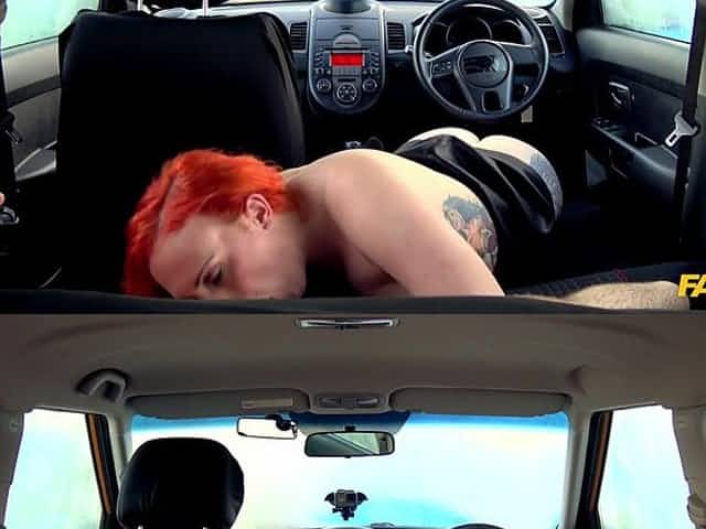 Nasty redhead woman seduced handsome driving instructor
