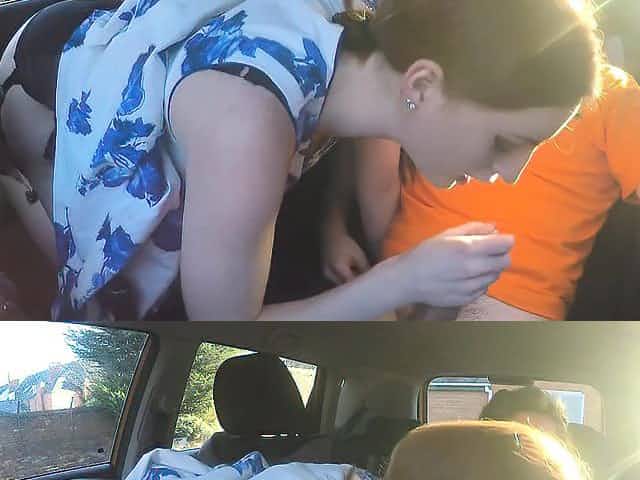 Lucky boyfriend gets a blowjob while driving
