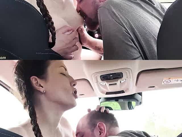 Naked Driving Leads to Quick Car Sex with Busty Czech Teen