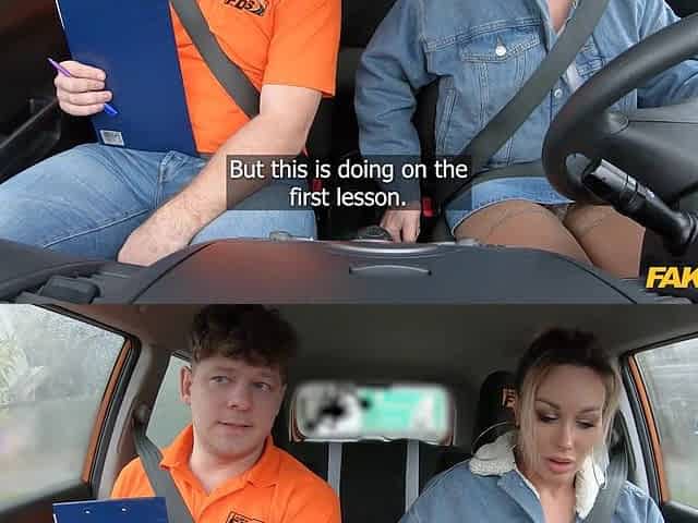 Fake Driving School Posh breasty blond examiner bangs