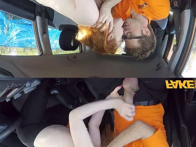 Fake Driving School Mad hawt redhead screws car gearstick after lesson