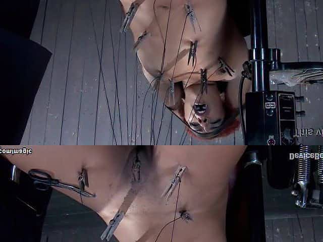 Lesbian stringed up from ankles whipped