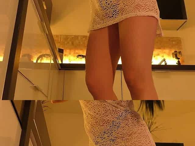Nipples Out Hottest Brunette Babe in the Kitchen Spreads Legs and Pussy Shows Big Ass Does Fitness Under Seethrough Dress
