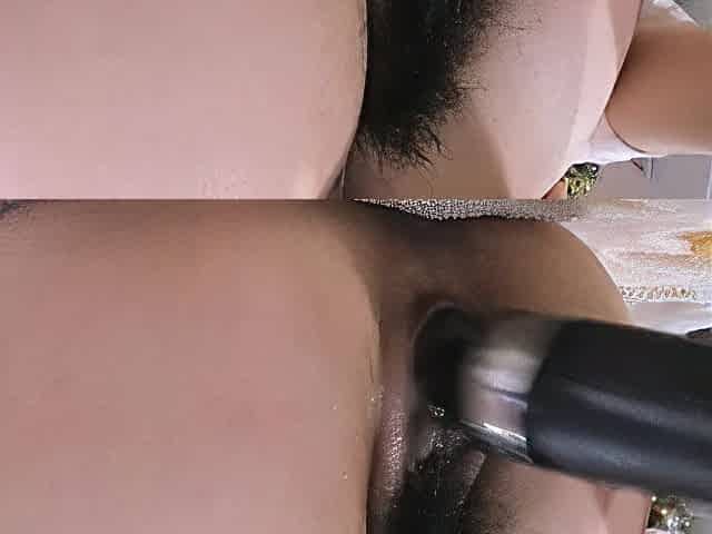Hairy Asian girl masturbates with vibrator inside her vagina