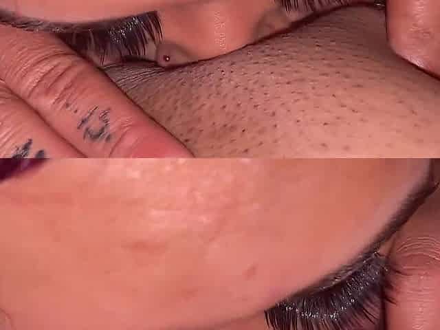 See in close-up my twat and booty as this guy licks my twat until I come