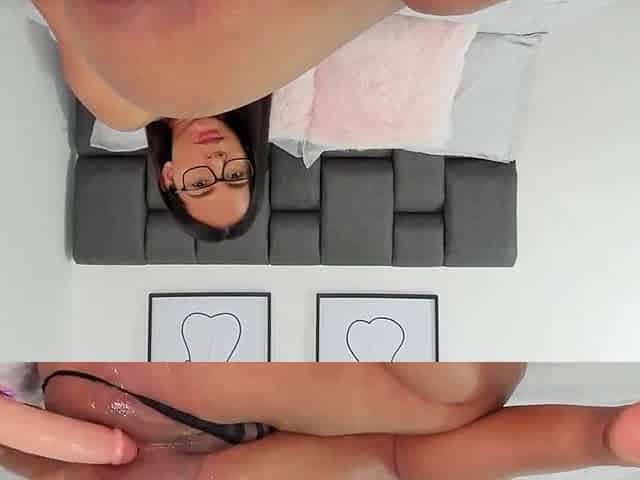 Trans gostosa de óculos metendo o consolo no cuzinho gostoso
