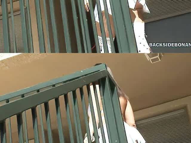 Curvy babe bending over on stairs displaying her eatable hot ass