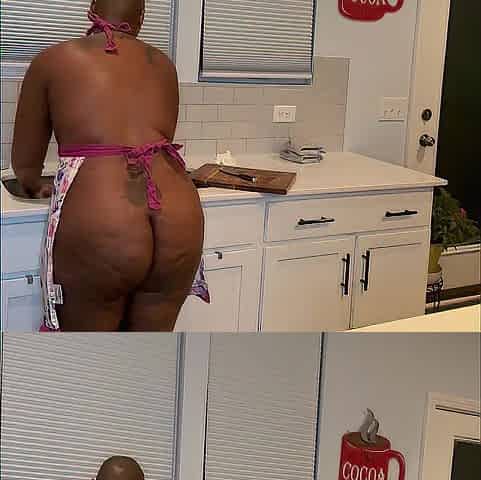 Black with large butt washes dishes in the undressed