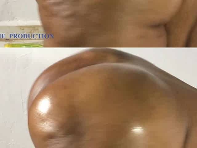 Young Ebony neighbor girl with plump and pert oiled butt