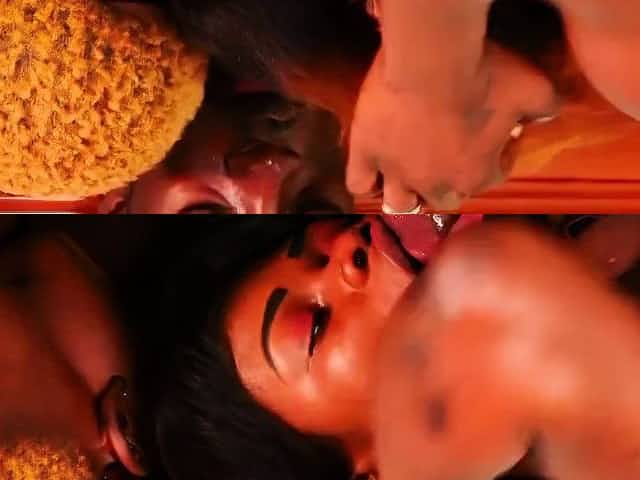 Ebony bride gets licked by hot masseuse