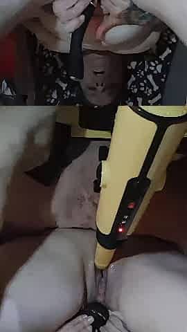 Riding sex-toy like a cowgilr and enchanting groans with 2 toys inside