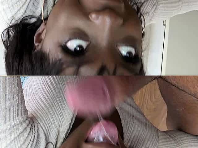 Skinny ebony with big tits sucks big cock