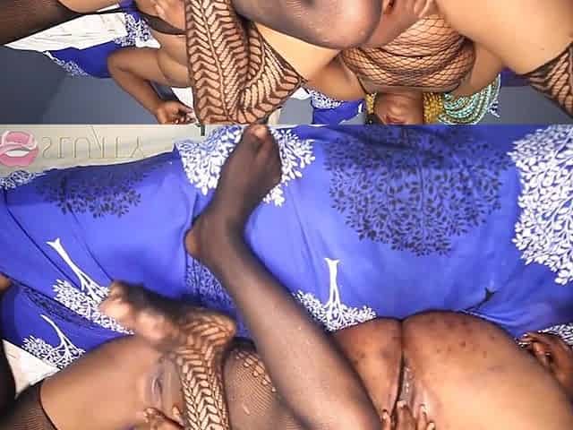 Tugjob with feet and booty of two Afro milfs - Part