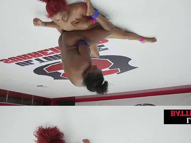 Wrestling ginger dyke fucks ebony lesbo with strapon