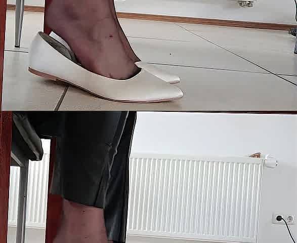 My nylon feet in white ballerina flats.