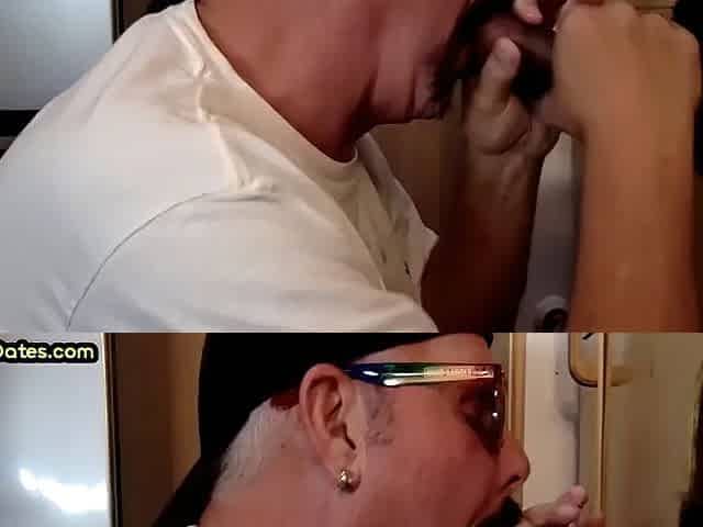 Gloryhole blowjob, dilfa sucks black cock and gets fucked in a sling