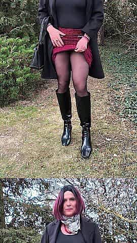 Precious redblack petticoat with ebony hose and boots