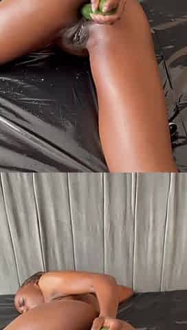 Horny Ebony Slut Fists, Gapes, Prolapses Then Fucks Her Pink Asshole Hard with Long, Thick Cucumber