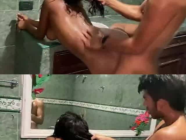 Une noire prend sa douche