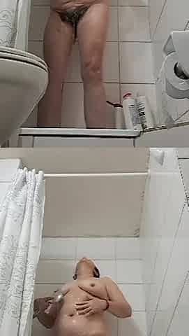 Mature milf with shower soap