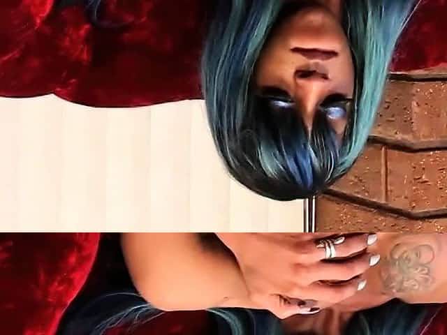 Solo busty blue hair transbabe tugging cock