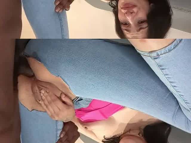 Young tranny sucks a horny guys cock on her knees