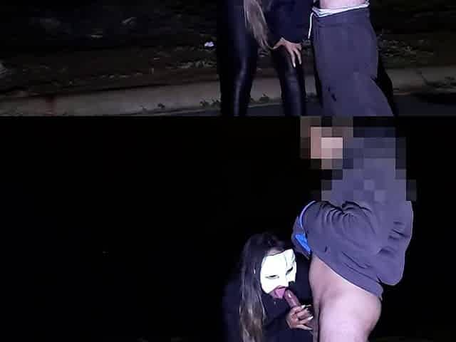 Whore sucks cock in the woods and gives pussy