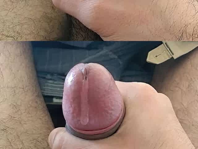 Precum slowly dripping from meaty cock until multiple cumshots
