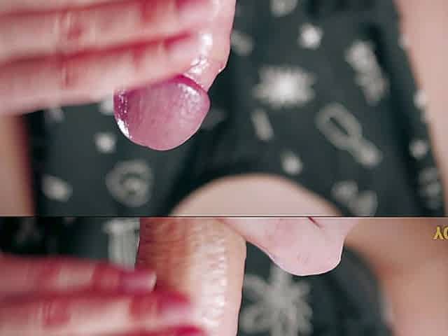 Slow edging handjob leads to a big cumshot