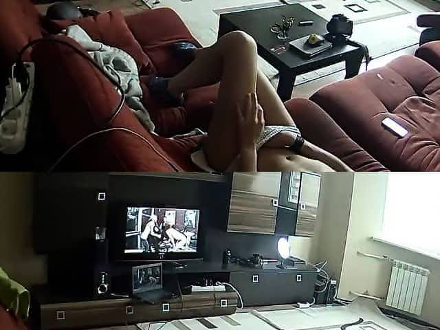 Elegant and lustful babe fingers her needy peach while watc