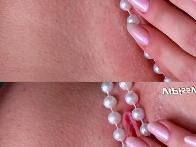 Elegant blonde teen Abby masturbates in pearl undies