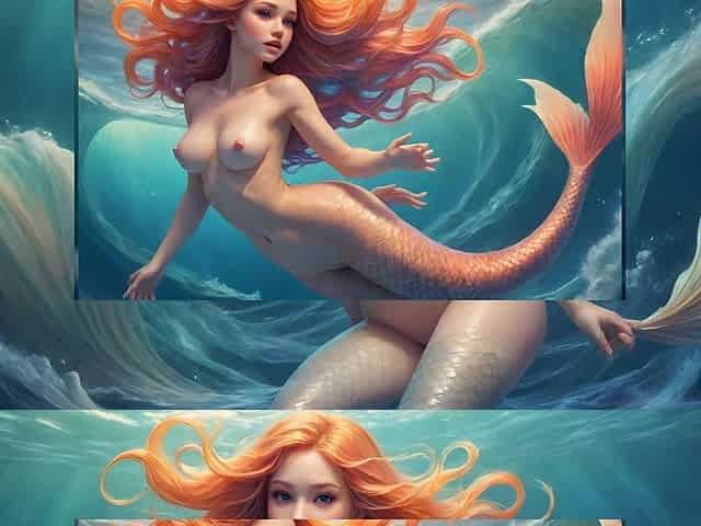 32 Nude Images of Cartoon Elf Mermaid Girl in the Wave