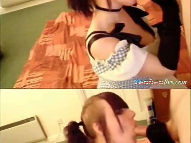 Pretty emo girl lets her boyfriend enjoy her in front of the webcam and while in costume.