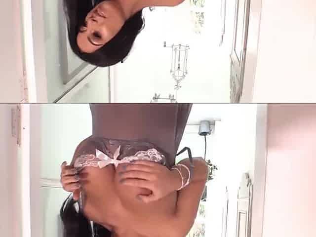 Black skinned babe making it all jiggle and bounce, Adorable ebony minx makes some hot webcam porn wearing a sleazy little night